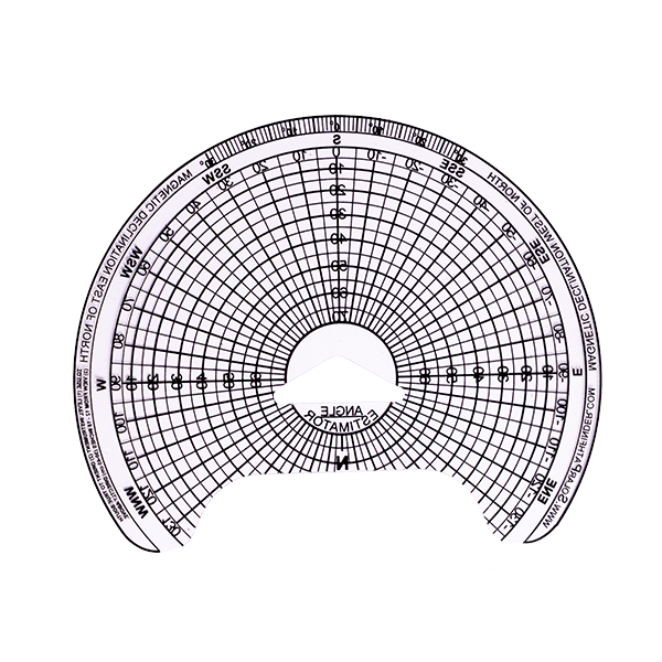 The angle estimator is used to approximate the azimuth (degrees east or west of true south or north), and the elevation (degrees above the horizon) of any object reflected in the Pathfinder's dome.